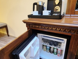 - V minibaru najdete výběr piv z místního pivovaru Bohemia Regent – ideální pro večerní ochutnávku.